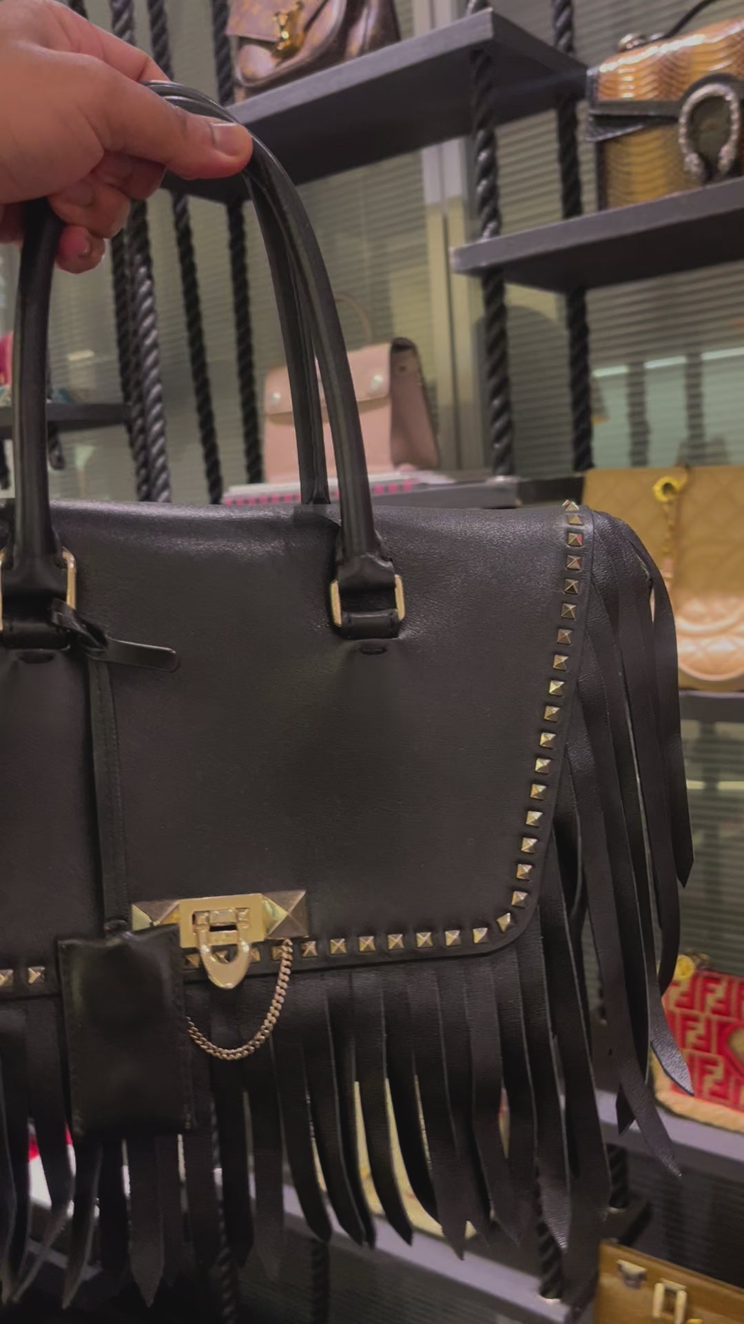Nome da bolsa: Bolsa Valentino Garavani Preta com Franjas